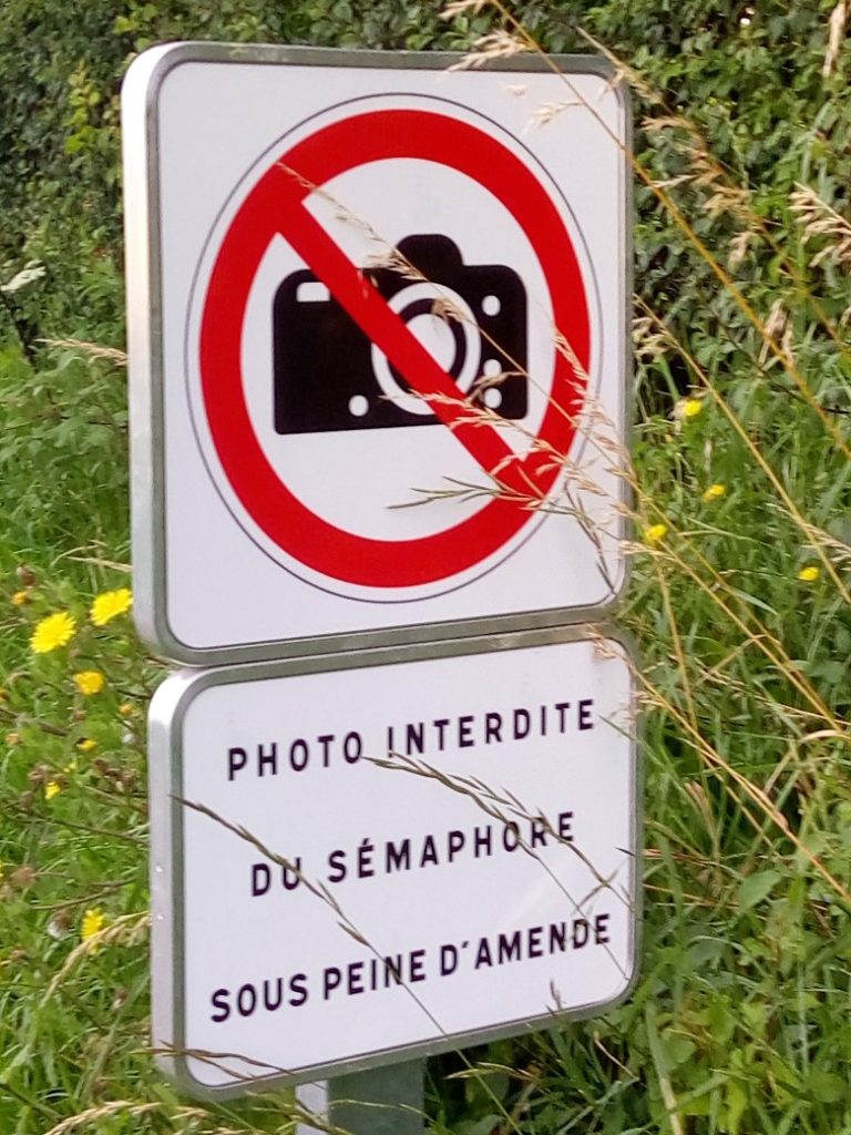 Une fois n’est pas coutume : ce ne sont pas les journalistes qui sont visés ici mais un ministère régalien. Vu sur un panneau en promenade dans une région que je ne nommerai pas : « Photo interdite du sémaphore sous peine d’amende » … ce qui signifie, au sens littéral, photo interdite depuis le sémaphore. Une rédaction correcte eût été : « Photo du sémaphore interdite… » On laissera de côté, pour ne pas accabler les rédacteurs du ministère, l’utilisation de l’abrégé « photo » au lieu de « photographie » et l’utilisation du singulier qui peut laisser entendre qu’une seule photo est interdite mais pas plusieurs… N’en jetée plus, la coupe est pleine d’amandes